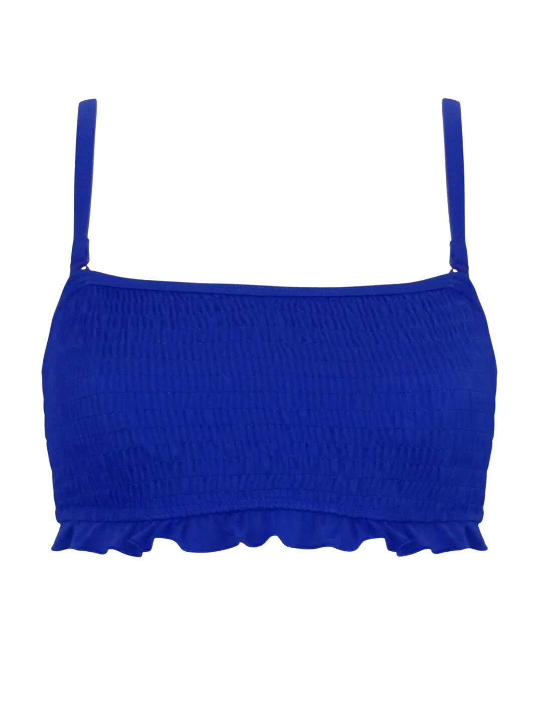 Pour Moi’s Free Spirit collection brings you elevated timeless classics. This strapless bikini top is your next perfect piece with the innovative hidden underwiring giving lift and the non-padded cups creating a comfortable all-day fit. This piece is crafted with a shirred material to provide premium comfort with a stylish edge. The shoulder straps are fully adjustable and removable so you can tailor the look and fit of this bikini to your own desires. Fastened at the back with a classic back clasp for a secure fit. The frill trim on the underband adds a feminine flair to this minimalist design.