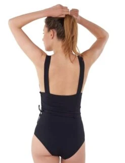 Pour Moi’s Wanderlust collection presents fun and feminine designs in a classic, sleek colour palette. This super flattering control swimsuit offers excellent coverage for those who prefer to show a bit less skin yet still look sexy and stylish. This flirty style is completed with non-wired cups with light padding, offering a boosted cleavage. Decorated with a feminine borderline frill neckline in a wrap design, being both flattering and playful. Finished with adjustable straps for an individual fit, making this stylish design a must-have.