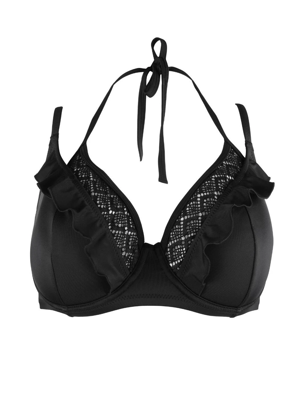Enjoy your next getaway in style with Pour Mois stylish Island Vibe swimwear collection. Featuring classic designs with a twist, the double strap bikini top is sure to flatter and support. Underwired double-layer cups feature a foam inner cup with crochet detailing and a ruffle outer cup, providing a trendy layered look. Shoulder straps are fully adjustable for the perfect fit and it fastens with clasp closure.