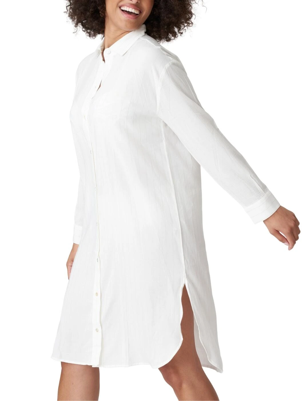 Bohemium and chic, this beach dress from Prima Donna’s Sidari collection is a must-have. Falling to an elegant mid-thigh length with side slits adding to the airy lightweight feel of this piece. Crafted with glittery stripe detailings throughout for a luxe edge. Long sleeves, a button-up design and trendy collar detailing create a gorgeous, sophisticated flair. Designed to either be worn open or classically as a blouse, the choice is yours with this versatile beach dress.