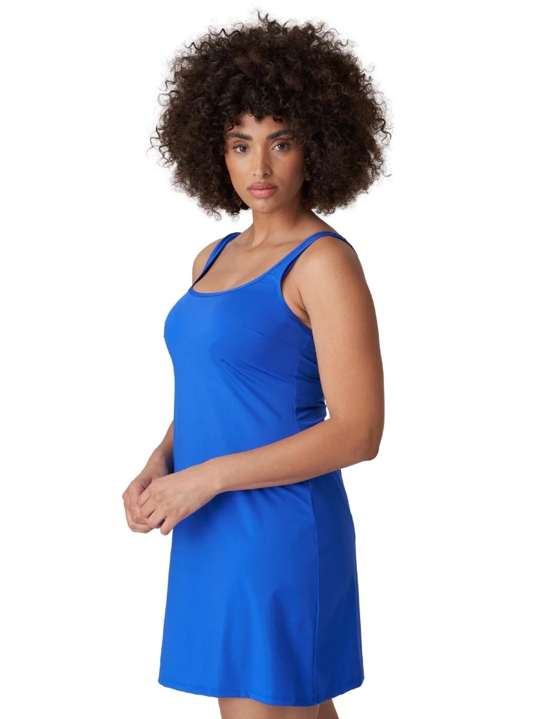 A true holiday essential! This beautiful short swimwear dress from the Karpen range by Prima Donna Swim is that easy throw-on piece, everyone needs for their vacation. Perfect for the beach or a simple day look, it hosts a classic style with a plain opaque design. It sits mid-thigh and has a slightly scooped front and back neckline. The dress is sleeveless and has non-adjustable straps as well as providing comfort with a fuss-free pull-on style.