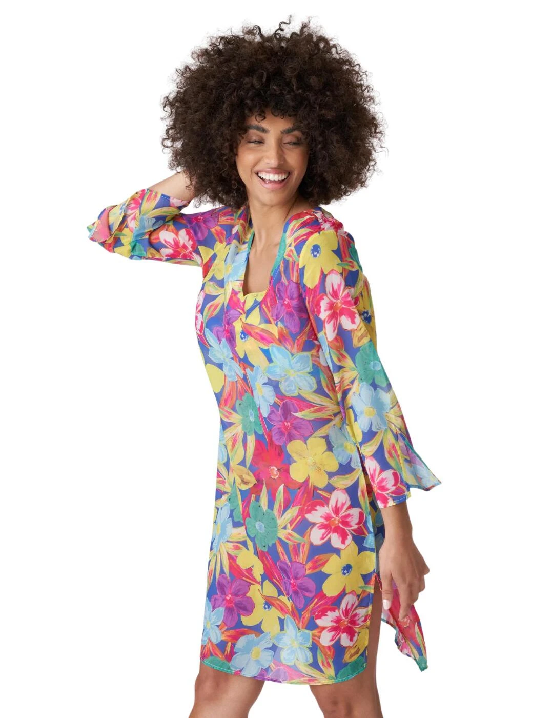 This luxurious beach coverup from Prima Donna’s luxurious Sazan line is perfect for looking stylish on your next getaway. This piece has 3/4 sleeves with a flirty split and is knee-length for modesty. This material is lightweight and airy ideal for hot beach days in the sun. The pullover design and v-cut neckline allow for easy wear and offer a flattering loose fit. Pair up with any of the stylish matching swimwear available from Prima Donna’s Sazan range to create an amazing coordinated look.