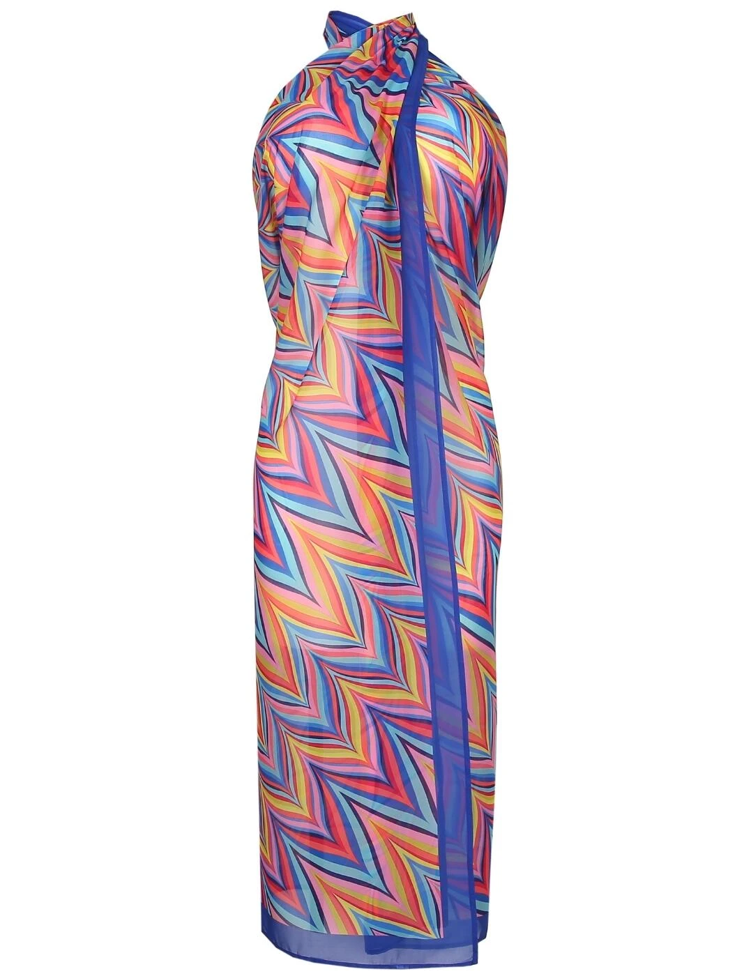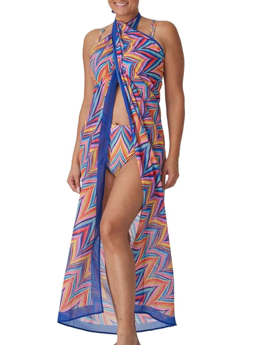 Feel confident and sexy from the pool to the bar in this luxury pareo by Prima Donna. The zigzag print creates a bold 70’s inspired look and the soft lightweight fabric offers the utmost comfortable feel. The versatile design allows you to convert the design to your preferred style. Complete the look with glamourous coordinating swimwear from the stylish Kea collection by Prima Donna.