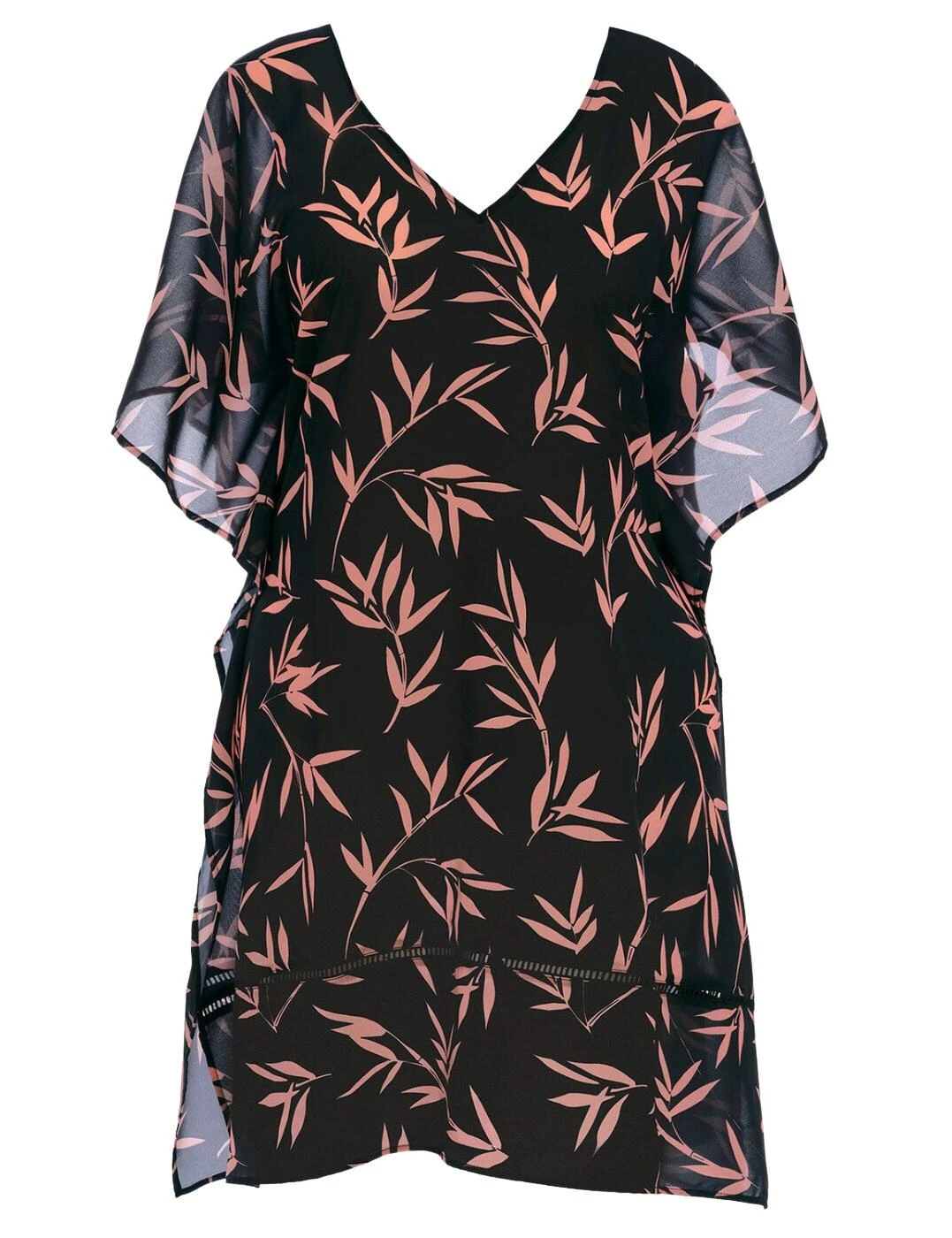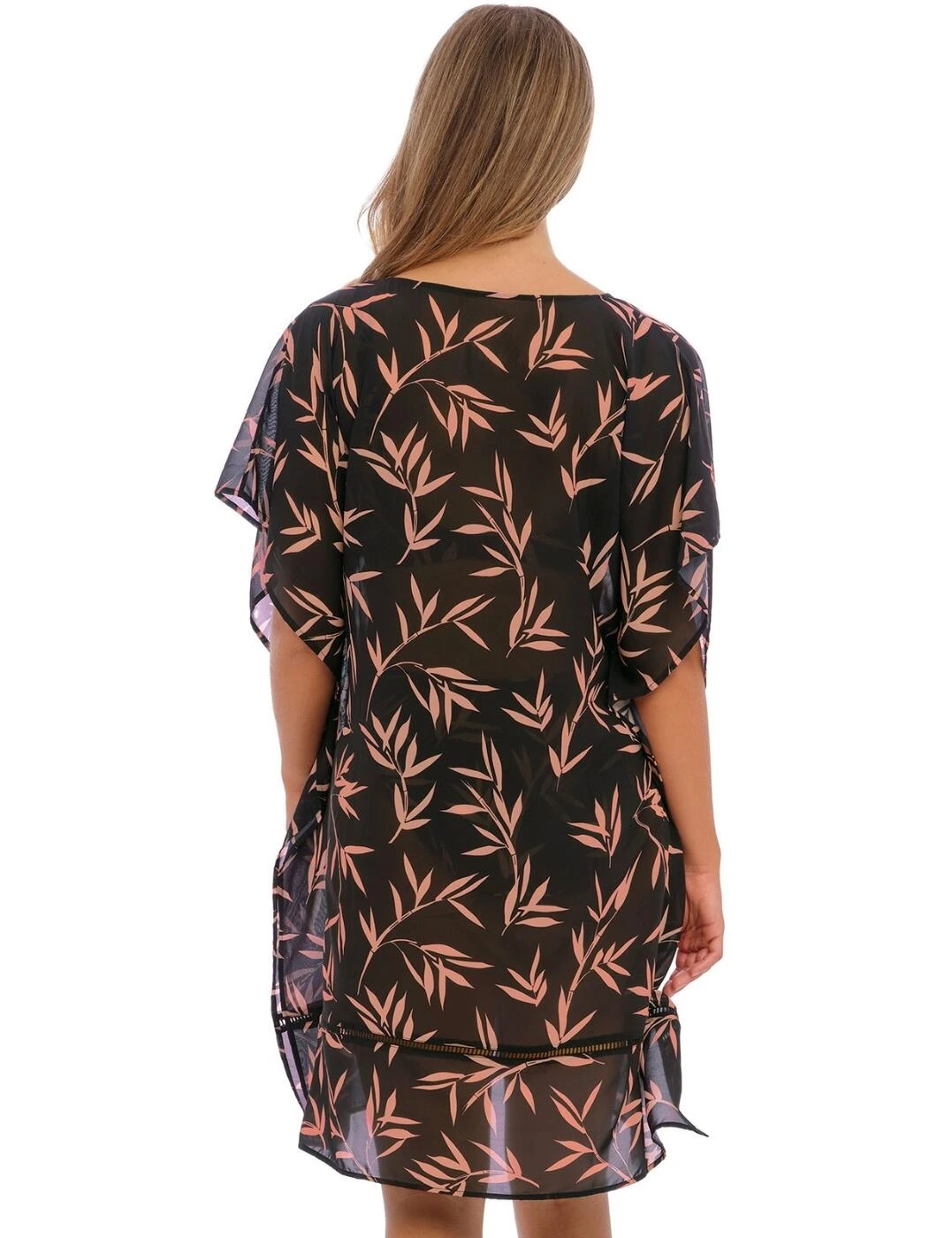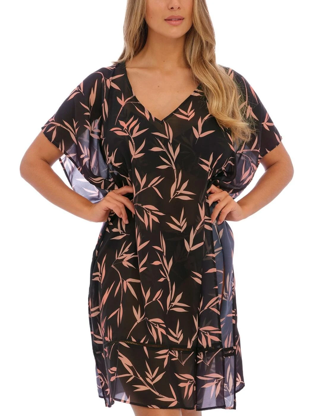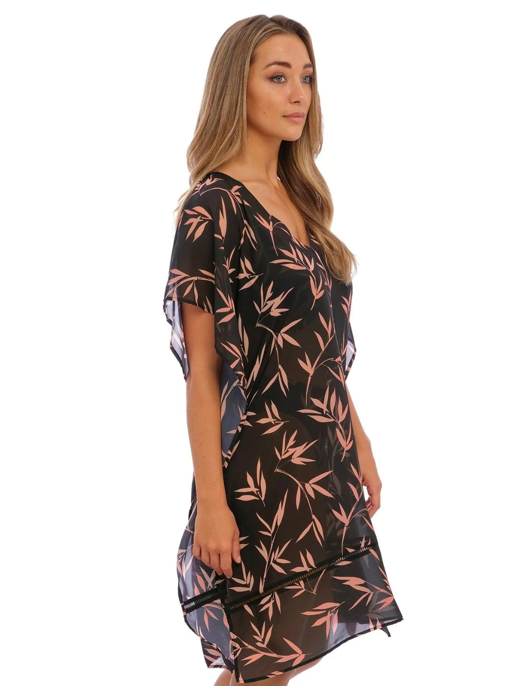 Feel stunning with this cover-up kaftan piece from the gorgeous Fantasie Luna Bay range. Featuring a v-neckline and mid-length for a sophisticated look by the poolside. This piece boasts an airy design with short sleeves for a comfortable and breathable fit that keeps you cool whilst relaxing poolside. The sheer fabric is adorned with a chic bamboo print to add a chic flair making this kaftan a gorgeous option.