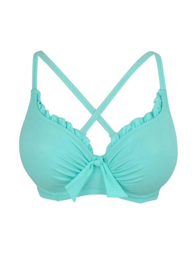 Everyone needs a simple bikini and the Getaway range by Pour Moi delivers just that! Featuring the popular balconette shape cups with underwriting, giving you a flattering and supported cleavage. Decorated with feminine frills, adding additional coverage, and a dainty bow at the centre panel. The straps are fully adjustable and convertible, allowing you to wear this style as a halterneck or cross-back. Pair with matching coordinates for a simple yet stylish beach look!