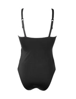 This simply styled swimsuit from the Drape collection at Maison Lejaby will offer you a flattering look with a sophisticated feel. A hidden internal structure and underwire ensure your comfort and support. A small V-neckline offers a feminine bust appearance, whilst still being a full cup for full modesty. Gathering details at the tummy and sides enhances your silhouette and hides your curves, finished with a small side bow at the hip.