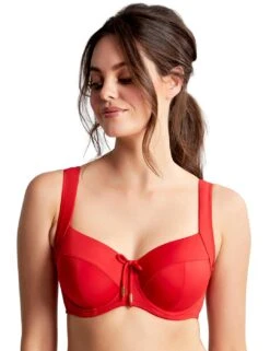 A staple in every summer wardrobe is an adaptable bikini top. The adjustable straps can be easily added to the piece with a small g-hook clasp, they offer a little added security if needed. But they can also be removed, so you can get that flawless tan you’ve been dreaming of. The material over the cups is twisted to create a design feature at the front, but they also add to the effect of an accentuated bust. Underwiring in the piece means perfect security and delightful uplift, combined with padding in the cups for a flattering style. A sweetheart neckline plunges ever so slightly to frame your bust whilst still offering that desirable safety within the piece no matter what your activities are!